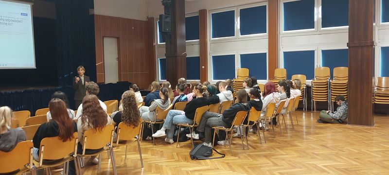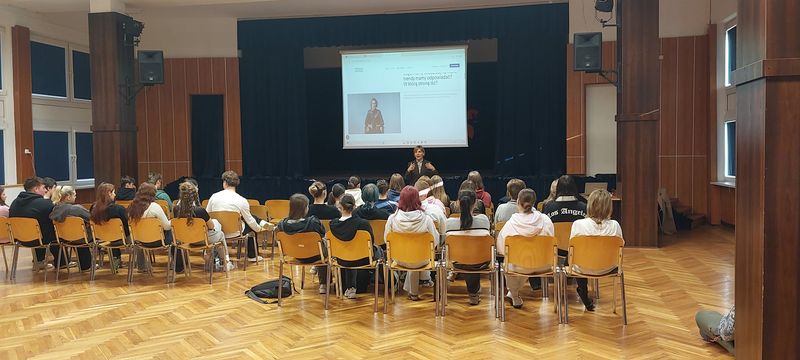 W dniu 5 listopada w klasach maturalnych naszego liceum odbył się wykład pt. „Trendy na rynku pracy- na jakie zawody i specjalności rośnie zapostrzebowanie". Podczas spotkania uczniowie poznali najnowsze kierunki rozwoju rynku zatrudnienia, w tym rosnące znaczenie kompetencji cyfrowych, językowych oraz umiejętności miękkich, takich jak komunikacja czy praca w zespole.