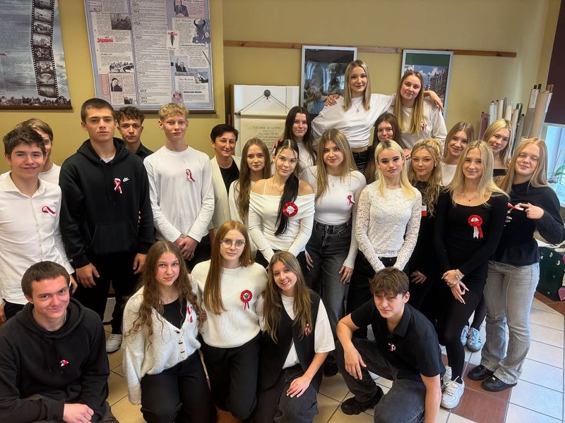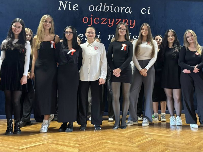 O godzinie 𝟏𝟏:𝟏𝟏 cała społeczność naszej szkoły wspólnie odśpiewała „𝐌𝐚𝐳𝐮𝐫𝐤𝐚 𝐃𝐚̨𝐛𝐫𝐨𝐰𝐬𝐤𝐢𝐞𝐠𝐨".