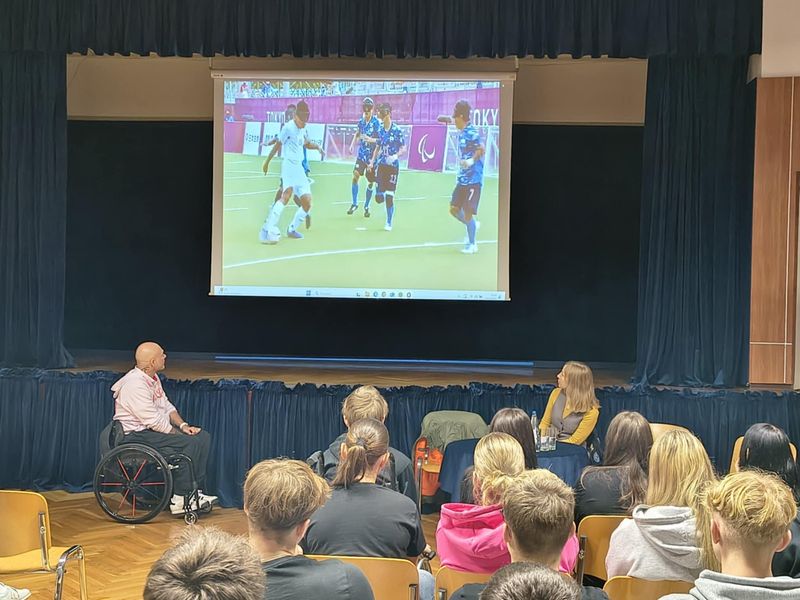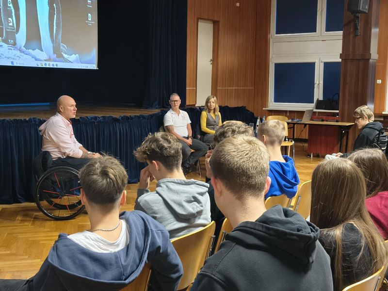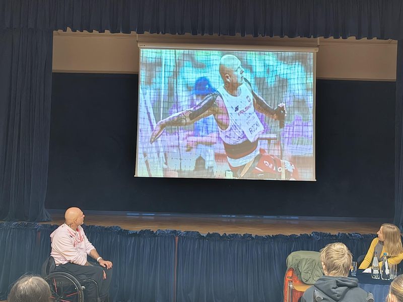 W naszej szkole wydarzyło się dziś coś, co trudno ująć w zwykłe słowa. Do IV LO przyjechał człowiek wyjątkowy — sportowiec, paraolimpijczyk, wojownik w najczystszym znaczeniu tego słowa: Rafał Rocki.