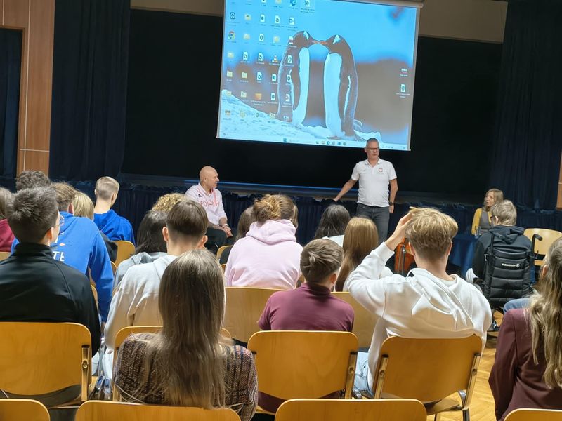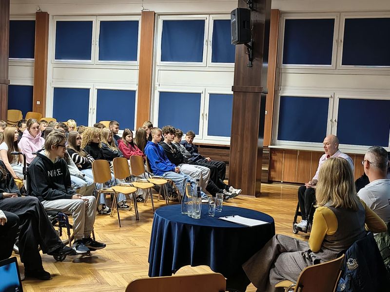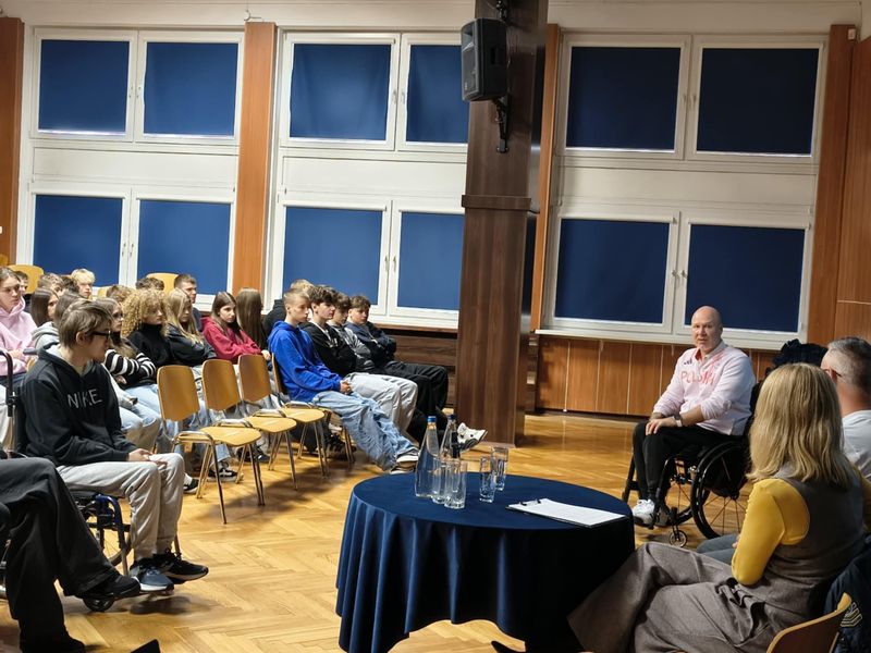 Panie Rafale — dziękujemy za to, że zostawiłeś w naszej szkole nie tylko opowieść, ale iskrę, która długo będzie w nas pracować. Za autentyczność. Za łzy wzruszenia. Za to, że pokazałeś nam, jak wygląda człowiek, który się nie poddaje