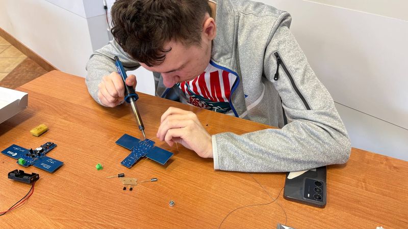 • Własnoręcznie zmontowali precyzyjne układy na płytkach PCB w kształcie stacji ISS.