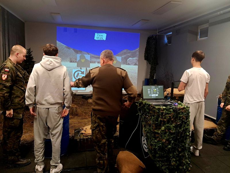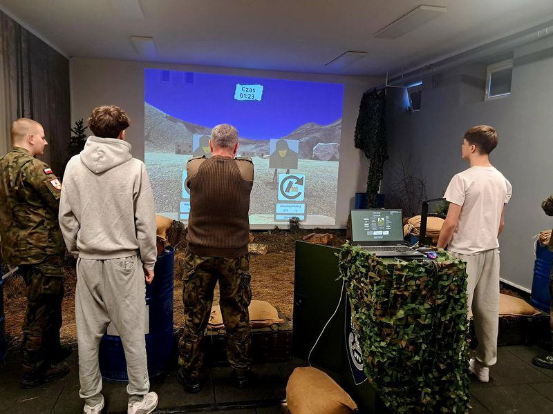 Dnia 25.02.2026 klasa 1a wraz z opiekunami odbyła szkolenie strzeleckie na wirtualnej strzelnicy w ZSEiO w Elblągu.