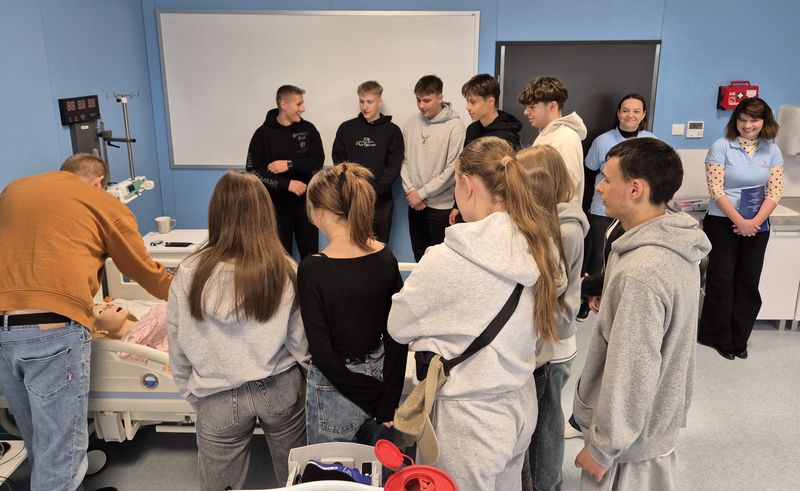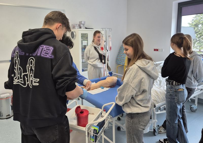 Po zajęciach uczniowie wzięli udział w zwiedzaniu Akademii Medycznych i Społecznych Nauk Stosowanych. Mieli okazję zobaczyć sale wykładowe, pracownie specjalistyczne oraz zapoznać się z bogatą ofertą kierunków dostępnych na uczelni. Przedstawiciele Akademii opowiedzieli o możliwościach studiowania, praktykach zawodowych oraz perspektywach zatrudnienia po ukończeniu studiów. Dla wielu uczniów była to inspirująca okazja do zastanowienia się nad przyszłością i poznania nowych ścieżek rozwoju zawodowego.